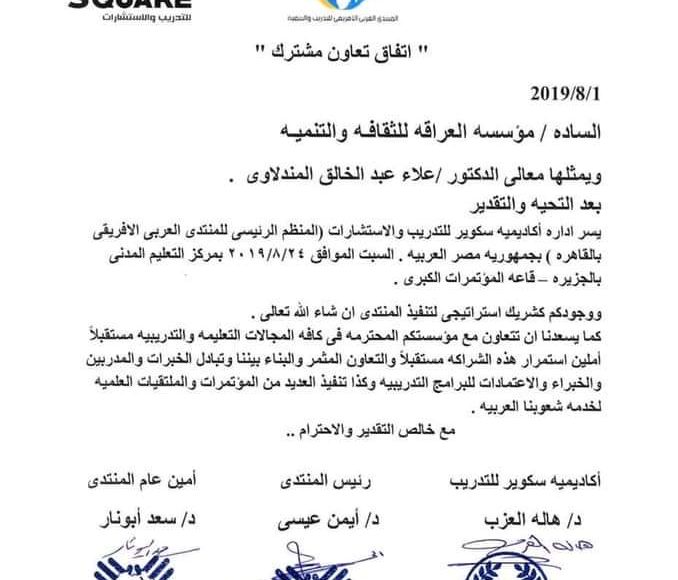 الاعتمادات وكتب الشكر اتفاق تعاون مشترك اتفاق تعاون مشترك بين مؤسسة العراقة للثقافة والتنمية واكاديمية سكوير للتدريب والاستشارات / جمهورية مصر العربية بواسطة هيئة التحرير في أغسطس 13, 2019 197 شارك 197 شارك فيسبوكTwitterجوجل بلسReddItواتس ابباينتريستالبريد الإلكتروني