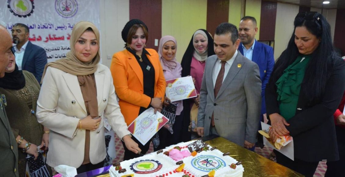 برعاية رئيس الاتحاد العام لنقابات العمال في العراق الاستاذ ستار دنبوس براك المحترم وبحضور النائب حسين عرب رئيس لجنة العمل والمنظمات المجتمع المدني النيابية، اقامت النقابة العامة للمدربين العراقيين ومكتب شؤون المرأة العاملة والطفل في الاتحاد العام لنقابات العمال في العراق ومؤسسة العراقة للثقافة والتنمية احتفالًا بمناسبة اليوم العالمي للمرآة الاربعاء الموافق ٨/ ٣/ ٢٠٢٣ على قاعة الاتحاد العام لنقابات العمال في العراق.