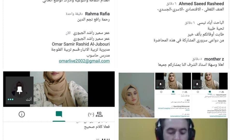 اختتام ورشة افتراضية عبر برنامج meet بعنوان ” الحد من العنف المجتمعي” المقدمة من قبل مؤسسة العراقة للثقافة والتنمية والنقابة العامة للمدربين العراقيين فرع نينوى بالتعاون مع مدرسة الصناديد الابتدائية للبنين وكان الحضور متنوع مابين مديري مدارس ومشرفين ومعلمين ونخبة من الخريجين وأولياء الأمور