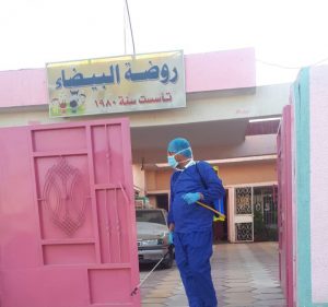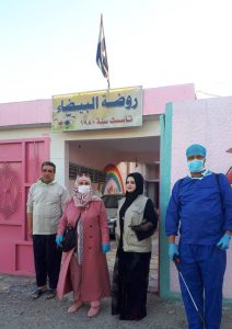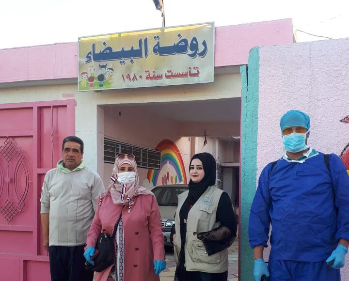 استمرار حملات التعفير من قبل النقابة العامة للمدربين العراقيين حملة اليوم الجمعة الموافق ١٠/٤/٢٠٢٠ روضة البيضاء الحكومية والبيوت القريبة منها في حي البنوك /شارع النداوي