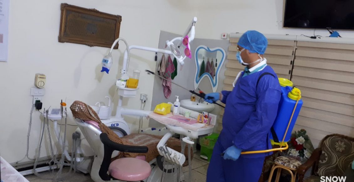 استمرار حملة التعفير من قبل النقابة العامة للمدربين العراقيين اليوم الاحد الموافق ٥/٤/٢٠٢٠ للعيادات والمجمعات الطبية في العاصمة بغداد.