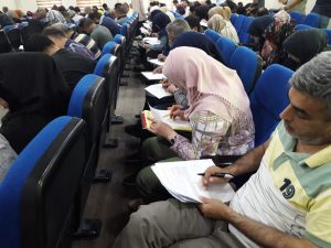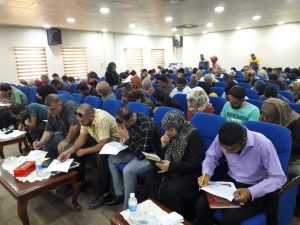 الاختبارات النهائية من (دورة سلامة اللغة العربية) مؤسسة العراقة للثقافة والتنمية بالتعاون مع وزارة العمل والشؤون الاجتماعية دائرة التخطيط والدراسات وشعبة سلامة اللغة وعلى قاعة (الصحة والسلامة المهنية)