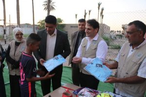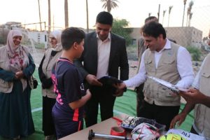 بجهود ذاتية من قيادة مؤسسة العراقة للثقافة والتنمية تم افتتاح ملعب خماسي لكرة القدم لدار براعم الصليخ لرعاية الايتام مع توزيع التجهيزات الرياضية على الأطفال اليوم الاربعاء الموافق 7/8/2019 * الملعب تم انجازه من قبل مؤسسة العراقة للثقافة والتنمية.