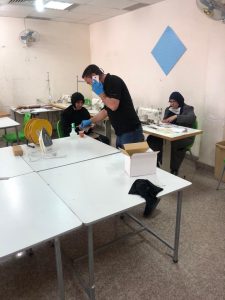 بجهود ذاتية لعضو النقابة العامة للمدربين العراقيين المستشار الدكتور مهند كاظم عبد الواحد افتتاح معمل خياطة لصناعة الكمامات وتوزيعها مجانا في محافظة كربلاء المقدسة .