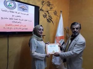 بحضور المهندس حسين فرهود مكي مدير عام الشركة العامة لتنفيذ مشاريع النقل والمواصلات اختتام دورة فن التعامل والاتكيت وزارة النقل / الشركة العامة لتنفيذ مشاريع النقل والمواصلات