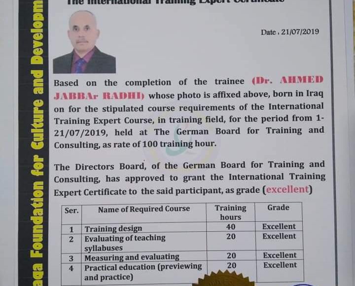 تخرج الدفعة الأولى من دورة خبير التدريب الدولي بعد تدريب عملي ونظري لمدة(١٠٠) ساعة تدريبية واعتمادهم مدربين معتمدين في مؤسسة العراقة للثقافة والتنمية في جميع المحافظات واقليم كردستان. من يبحث العراقة ( الأصالة، العلمية، المنهجية، الشهادات الرصينة) مؤسسة العراقة قيمة علمية ومعرفية في جميع مؤسسات الدولة والجامعات العراقية فضلاً عن المكانة العلمية والاقليمية والدولية. (الافعال أبلغ من الأقوال) للإطلاع على الانشطة والبرامج التدريبية لمؤسسة العراقة للثقافة والتنمية قناة التلكرام لمؤسسة العراقة للثقافة والتنمية https://t.me/joinchat/AAAAAEXKylOnAwfQV2Y4ew موقع مؤسسة العراقة للثقافة والتنمية https://al-araqah.com/ موقع مجلة إشراقات تنموية العلمية المحكمة https://ishraqaat.com/ صفحة الفيس بوك لمؤسسة العراقة للثقافة والتنمية https://www.facebook.com/%D9%85%D8%A4%D8%B3%D8%B3%D8%A9-%D8%A7%D9%84%D8%B9%D8%B1%D8%A7%D9%82%D8%A9-%D9%84%D9%84%D8%AB%D9%82%D8%A7%D9%81%D8%A9-%D9%88%D8%A7%D9%84%D8%AA%D9%86%D9%85%D9%8A%D8%A9-791516947664611/
