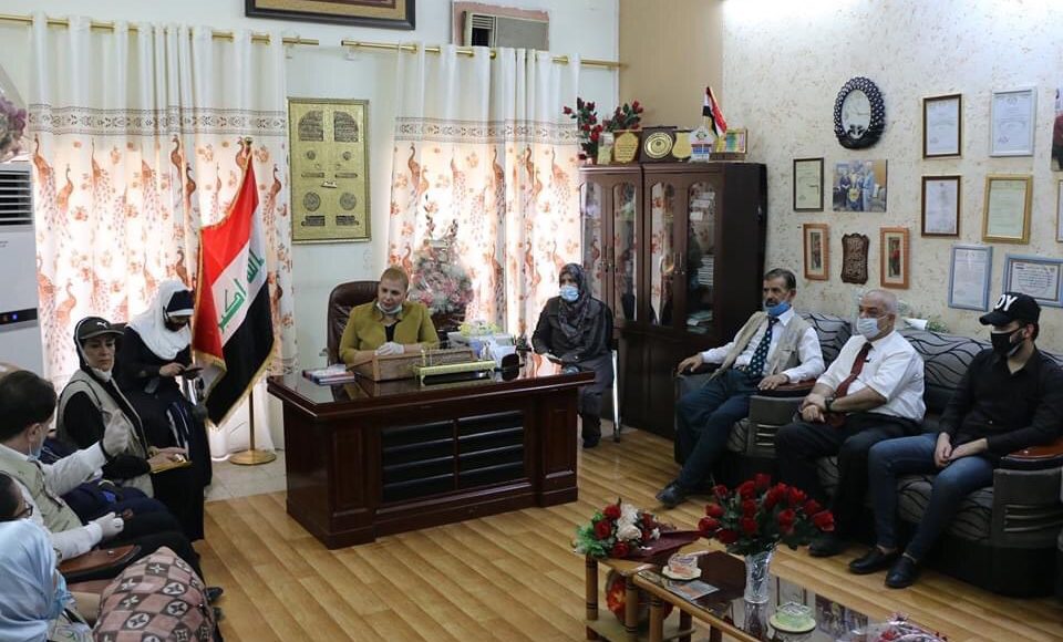 زيارة قاطع مدارس الاعظمية والنقابة العامة للمدربين العراقيين ومؤسسة العراقة للثقافة والتنمية لدار الحنان لشديدي العوق ولقاء مديرة الدار صنوبر محمد علي الجاف لتفقد أحول الدار وتزويدهم بالاحتياجات المطلوبة وقد حظر اللقاء شيخ النقابيين الحاج حاجم العبودي