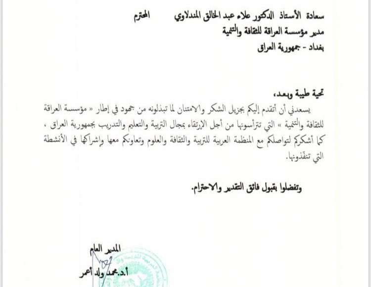 الاعتمادات وكتب الشكر شكر وتقدير من الجامعة العربية / المنظمة العربية للتربية والثقافة والعلوم لمؤسسة العراقة للثقافة والتنمية. بواسطة هيئة التحرير في مارس 2, 2022 252 شارك كتاب شكر من الجامعة العربية / المنظمة العربية للتربية والثقافة والعلوم لمؤسسة العراقة للثقافة والتنمية. 252 شارك فيسبوكTwitterجوجل بلسReddItواتس ابباينتريستالبريد الإلكتروني