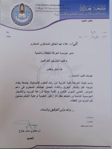 الاعتمادات وكتب الشكر شكر وتقدير من جامعة بغداد / كلية التربية ابن رشد شكر وتقدير من جامعة بغداد / كلية التربية ابن رشد بواسطة هيئة التحرير في أغسطس 6, 2020 488 شارك 488 شارك فيسبوكTwitterجوجل بلسReddItواتس ابباينتريستالبريد الإلكتروني