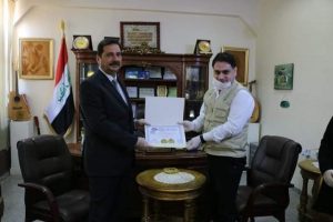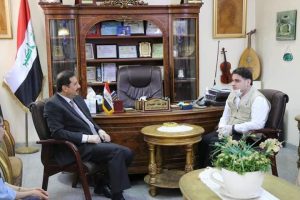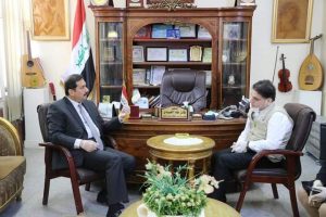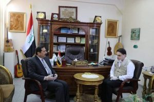 لقاء رئيس النقابة العامة للمدربين العراقيين الدكتور علاء عبدالخالق المندلاوي بمدير عام دائرة ثقافة وفنون الشباب الدكتور فائز طه سالم اليوم الاربعاء الموافق 22/4/2020