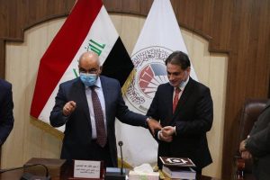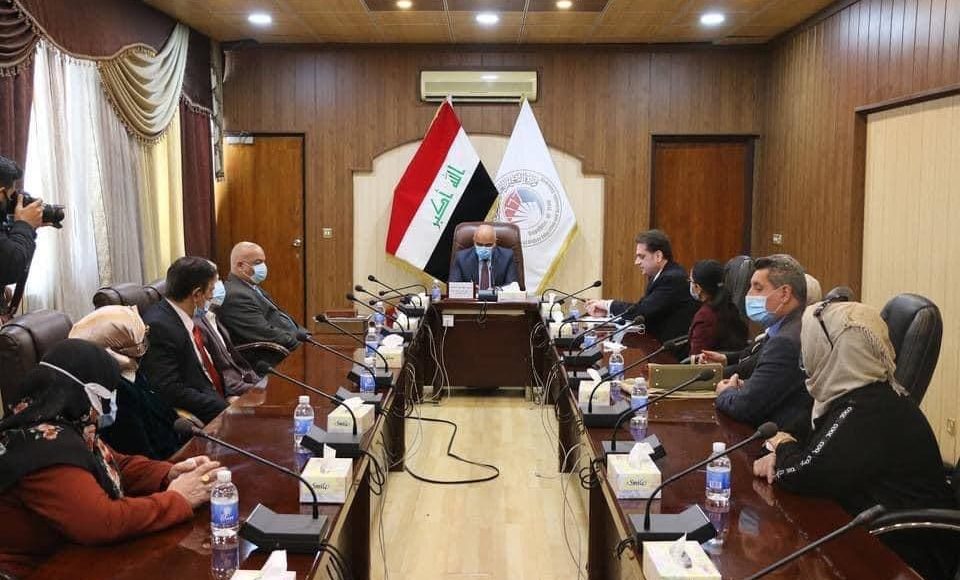 لقاء وفد مؤسسة العراقة للثقافة والتنمية بمعالي السيد وزير التعليم العالي والبحث العلمي الأستاذ الدكتور نبيل كاظم عبد الصاحب الخميس الموافق 18/2/2021