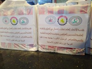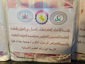 مساهمة الاتحاد العام لنقابات العمال في العراق والنقابة العامة للمدربين العراقيين ومؤسسة العراقة للثقافة والتنمية في دعم المؤتمر العلمي النبوي الثامن بعنوان : (إشراقات تربوية من السيرة المحمدية) التي إقامته كلية التربية ابن رشد للعلوم الانسانية / جامعة بغداد حيث قدم وفد النقابة العامة للمدربين العراقيين ومؤسسة العراقة للثقافة والتنمية اليوم الاثنين الموافق ٢٠٢٠/٢/١٧ وجبة طعام مع الضيافة للمؤتمرين المشاركين من الباحثين واللجان والحضور دعماً المسيرة العلمية في العراق