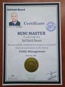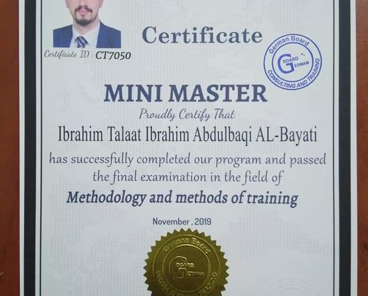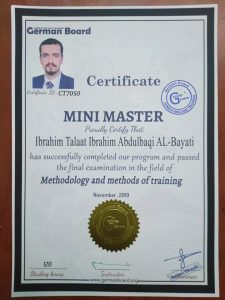 يسرنا تقديم التهنئة لحصول كل من – د. ابراهيم طلعت إبراهيم على الماجستير المهني المصغر في مناهج وطرائق التدريب – سيف خالد حسين على الماجستير المهني المصغر في الادارة العامة – وهاب محسن عايد على الماجستير المهني المصغر من البورد الالماني للتدريب والاستشارات وبأشراف مدير البورد في الشرق الاوسط ومدير مؤسسة العراقة للثقافة والتنمية الدكتور علاء عبد الخالق المندلاوي د.علاء عبد الخالق المندلاوي مدير البورد في الشرق الاوسط مدير مؤسسة العراقة للثقافة والتنمية