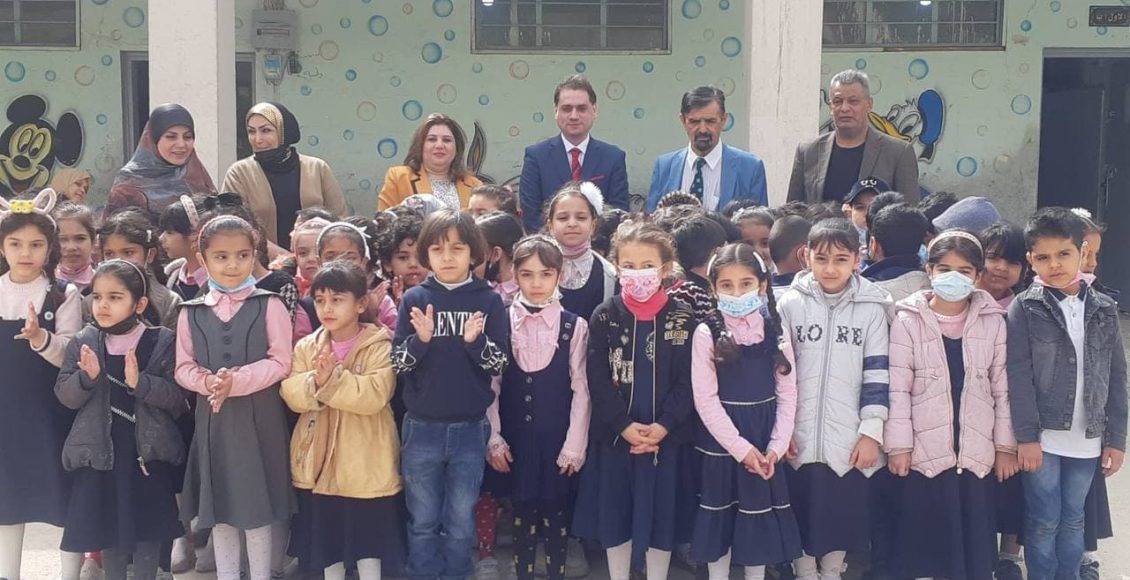 اقامت مؤسسة العراقة للثقافة والتنمية والنقابة العامة للمدربين العراقيين وقسم تمكين المراة في وزارة التربية بالتعاون مع المديرية العامة لتربية بغداد / الكرخ الثالثة احتفالآ وتكريمآ لاطفال الايتام في مدرسة عبد الله بن حسن في منطقة الحرية دور نواب الضوابط الاثنين الموافق / ٧ / ٣ /٢٠٢٢.