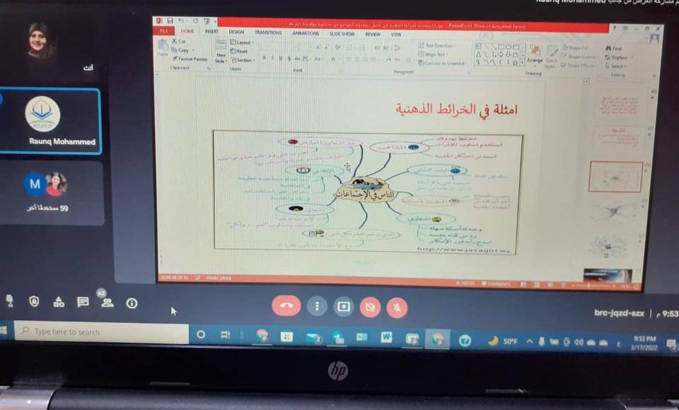 اختتام دورة مهارات استخدام الخرائط الذهنية في تحليل المحتوى الموضوعي التي اقامتها مؤسسة العراقة للثقافة والتنمية والنقابة العامة للمدربين العراقيين واتحاد نقابات المدربين العرب بتاريخ ١٧/٣/٢٠٢٢