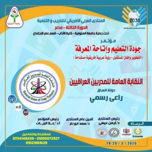 المؤتمر العلمي الدولي في جمهورية مصر العربية بعنوان :(جودة التعليم واتاحة المعرفة) جامعة المنوفية كلية الاداب (جامعة حكومية) بالتعاون مع المنتدى العربي الافريقي للتدريب والتنمية والنقابة العامة للمدربين العراقيين ومؤسسة العراقة للثقافة والتنمية للمدة من ٢٨_٢٩ /٢٠٢٠/٣