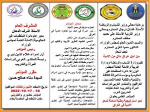 تقيم وزارة الشباب والرياضة ووزارة التربية والأمانة العامة لمجلس الوزراء/ دائرة المنظمات غير الحكومية ومؤسسة العراقة للثقافة والتنمية والنقابة العامة للمدربين العراقيين والمنتدى العربي لدراسات المرأة والتدريب/ اتحاد نقابات المدربين العرب