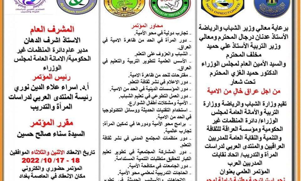 المؤتمر العلمي بعنوان (نحو استراتيجية وطنية شاملة لمحو الامية في العراق)