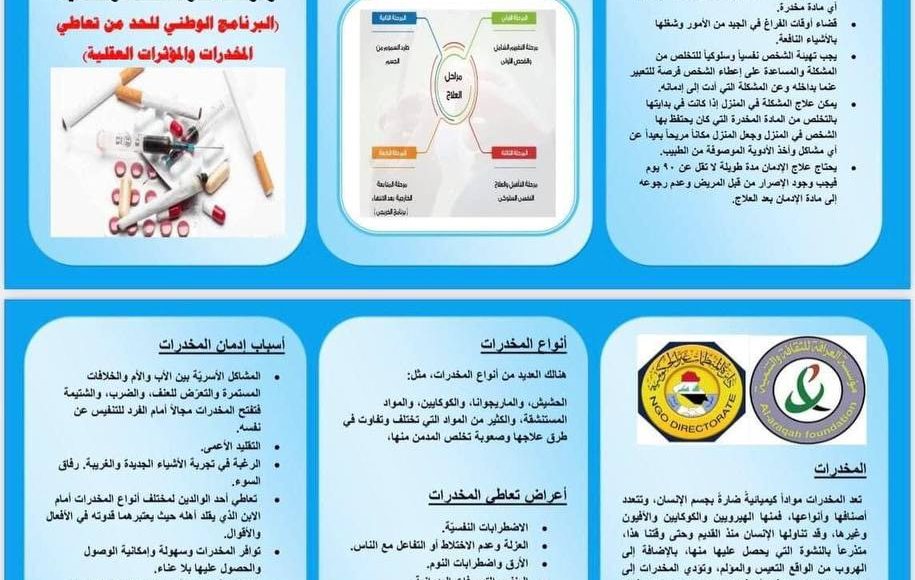 اخبار المؤسسة انطلاق البرنامج الوطني من الحد من ظاهرة المخردات والمؤثرات العقلية بواسطة هيئة التحرير في أغسطس 26, 2022 259 شارك الامانة العامة لمجلس الوزراء ومؤسسة العراقة للثقافو والتنمية تطلق البرنامج الوطني من الحد من ظاهرة المخردات والمؤثرات العقلية . 259 شارك فيسبوكTwitterجوجل بلسReddItواتس ابباينتريستالبريد الإلكتروني