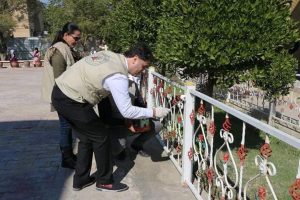اقامت النقابة العامة للمدربين العراقيين ومؤسسة العراقة للثقافة والتنمية والاتحاد العام لنقابات العمال في العراق حملة زراعة ستمائة وخمسون شتلة من الورود في حدائق جامعة بغداد / كلية التربية ابن رشد للعلوم الانسانية لزيادة المساحات الخضراء ضمن تطبيقات التربية والتعليم من اجل التنمية المستدامة وتكريم العاملين اليوم الاثنين الموافق ٢٠٢٠/٢/٣