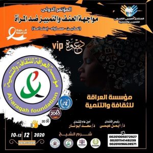 برعاية ومشاركة فاعلة من مؤسسة العراقة للثقافة والتنمية والنقابة العامة للمدربين العراقيين اختتام المؤتمر العلمي الدولي ( مواجهة العنف والتميز ضد المرأة ) في جمهورية مصر.