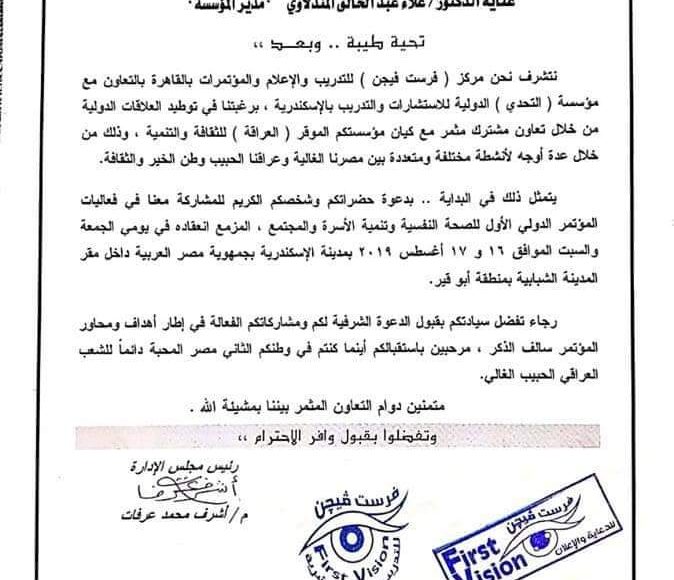 الاعتمادات وكتب الشكر تعاون مشترك تعاون مشترك بين مؤسسة العراقة للثقافة والتنمية ومركز فرست فيجن للتدريب والإعلام والمشاعر بواسطة هيئة التحرير في أغسطس 13, 2019 190 شارك 190 شارك فيسبوكTwitterجوجل بلسReddItواتس ابباينتريستالبريد الإلكتروني