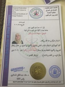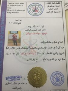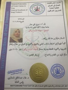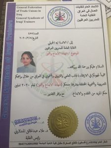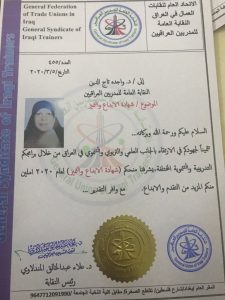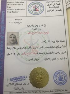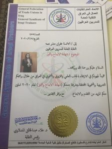تكريم عدد من المدربات المبدعات في النقابة العامة للمدربين العراقيين بمناسبة يوم المراة العالمي 7/3/2020