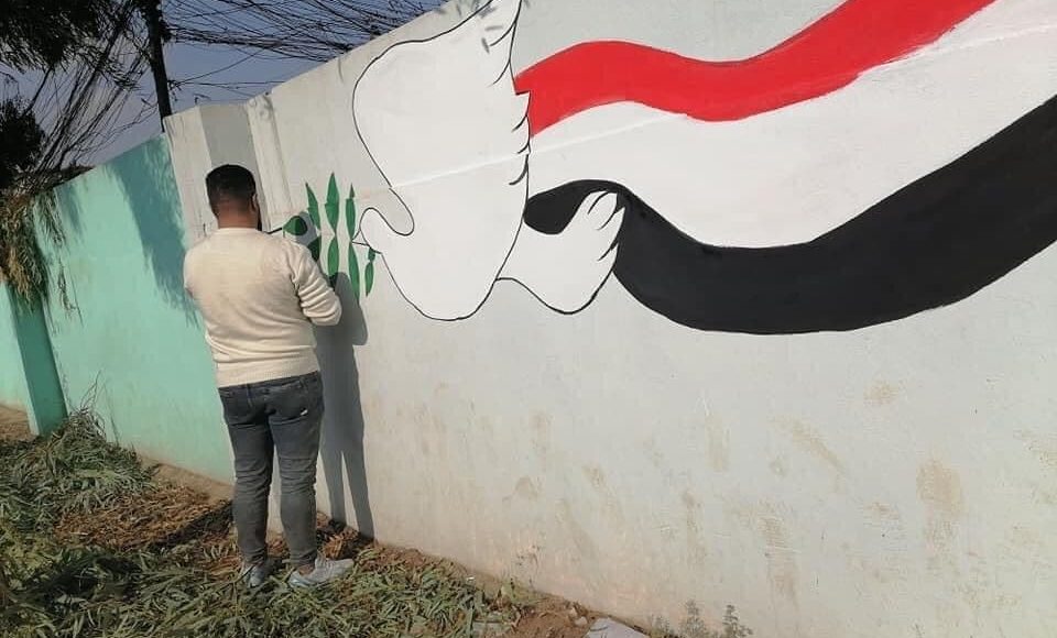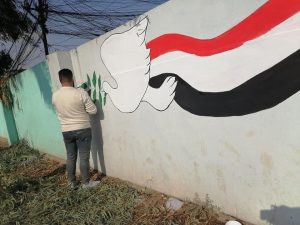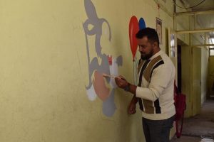 رسم لوحات فنية جميلة على جدران المدرسة تهيئةً لاستقبال الأطفال للعام الدراسي الجديد ضمن سلسلة حملات لمدارس في نينوى بجانبيها الأيمن والايسر