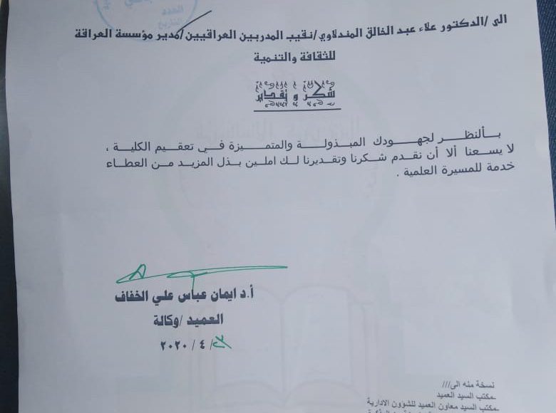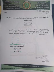 الاعتمادات وكتب الشكر شكر وتقدير الجامعة المستنصرية كلية التربية الأساسية شكر وتقدير الجامعة المستنصرية كلية التربية الأساسية بواسطة هيئة التحرير في أغسطس 6, 2020 230 شارك 230 شارك فيسبوكTwitterجوجل بلسReddItواتس ابباينتريستالبريد الإلكتروني