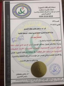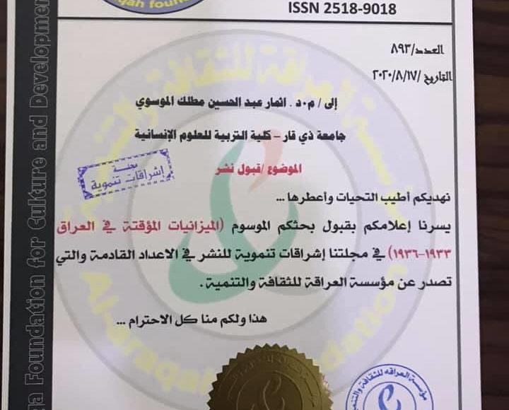 الاعتمادات وكتب الشكر قبولات النشر في مجلة إشراقات تنموية قبولات النشر في مجلة إشراقات تنموية العلمية المحكمة والتي تصدر عن مؤسسة العراقة للثقافة والتنمية بواسطة هيئة التحرير في أغسطس 23, 2020 279 شارك 279 شارك فيسبوكTwitterجوجل بلسReddItواتس ابباينتريستالبريد الإلكتروني