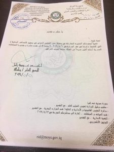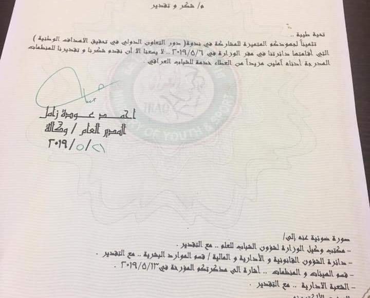 الاعتمادات وكتب الشكر كتاب شكر من وزارة الشباب والرياضة دائرة العلاقات والتعاون الدولي إلى مؤسسة العراقة للثقافة والتنمية كتاب شكر من وزارة الشباب والرياضة دائرة العلاقات والتعاون الدولي إلى مؤسسة العراقة للثقافة والتنمية بواسطة هيئة التحرير في مايو 26, 2019 843 شارك 843 شارك فيسبوكTwitterجوجل بلسReddItواتس ابباينتريستالبريد الإلكتروني