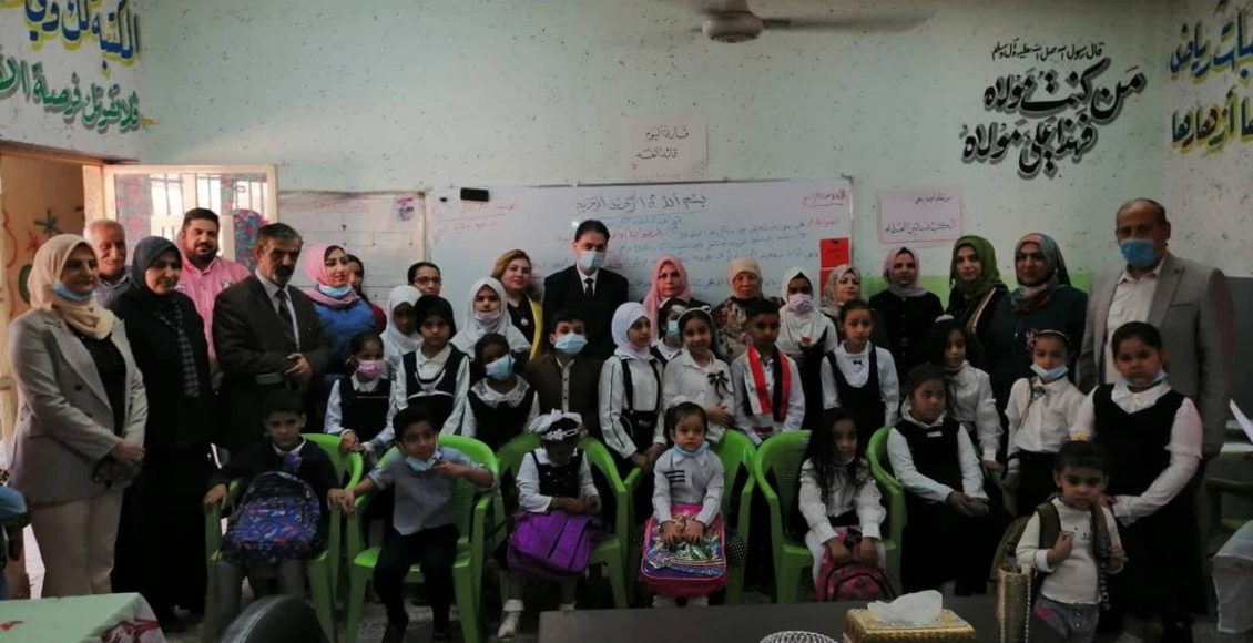 اقامت مؤسسة العراقة للثقافة والتنمية وبالتنسيق مع وزارة التربية المديرية العامة لتربية محافظة بغداد الرصافة الثالثة بتوزيع الحقائب المدرسية والقرطاسية لطالبات مدرسة النور الابتدائية للبنات / مدينة الصدر وزراعة حديقة المدرسة بشتلات من الورود الاربعاء الموافق ١٠/١١/٢٠٢١