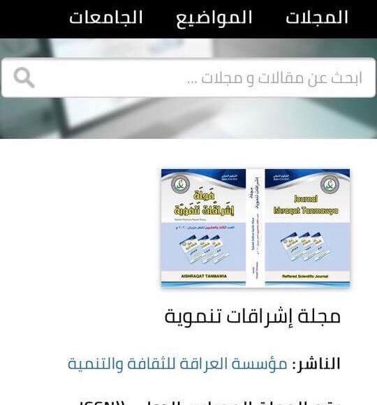 مجلة اشراقات تنموية التي تصدر عن مؤسسة العراقة للثقافة والتنمية ضمن المجلات المعتمدة في موقع وزارة التعليم العالي والبحث العلمي