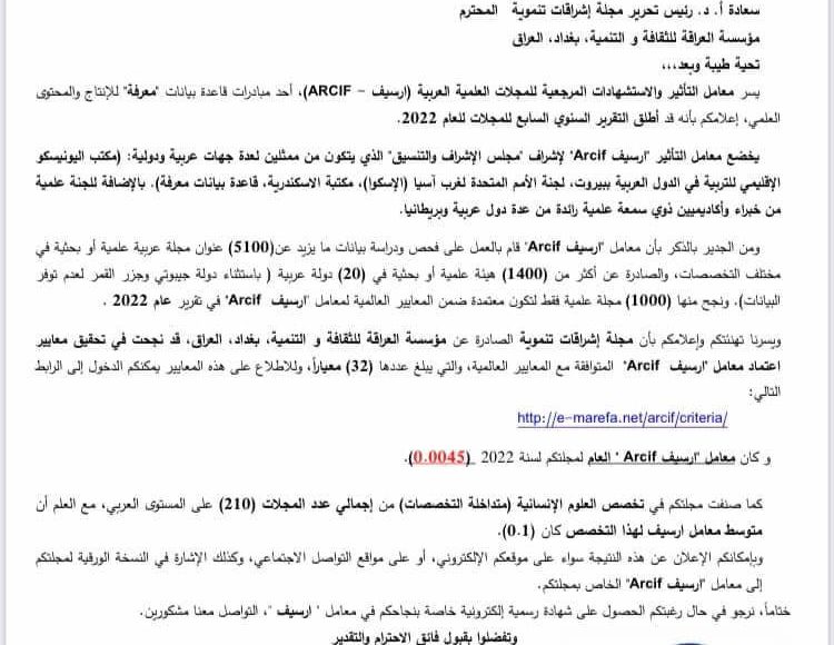 الاعتمادات وكتب الشكر معامل التاثير العربي لمجلة إشراقات تنموية بواسطة هيئة التحرير في أكتوبر 7, 2022 175 شارك معامل التاثير العربي لمجلة إشراقات تنموية التي تصدر عن مؤيسة العراقة للثقافة والتنمية 175 شارك فيسبوكTwitterجوجل بلسReddItواتس ابباينتريستالبريد الإلكتروني