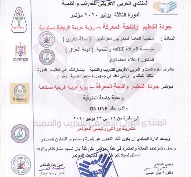 المؤتمرات العلمية بواسطة هيئة التحرير في أغسطس 6, 2020 78 شارك 78 شارك فيسبوكTwitterجوجل بلسReddItواتس ابباينتريستالبريد الإلكتروني